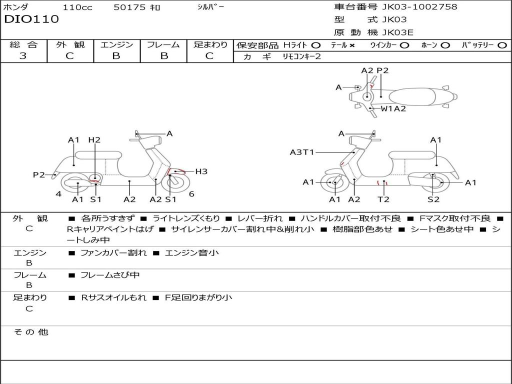 | Номер рамы / VIN | JK03-1002758 |