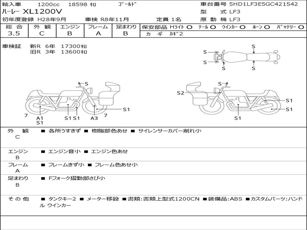 Номер рамы / VIN | 5HD1LF3E5GC421542 |