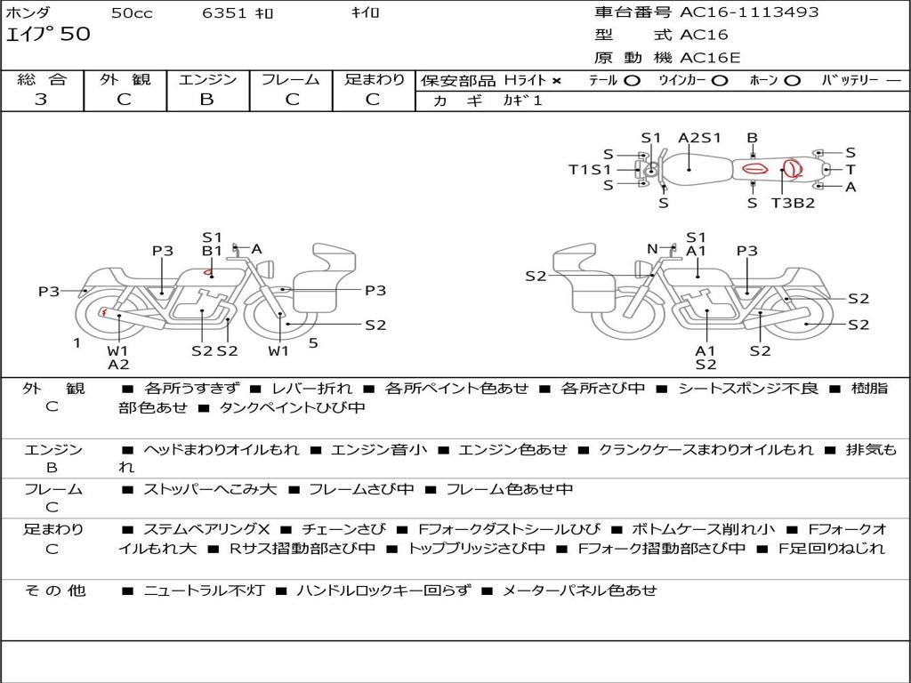 | Номер рамы / VIN | AC16-1113493 |