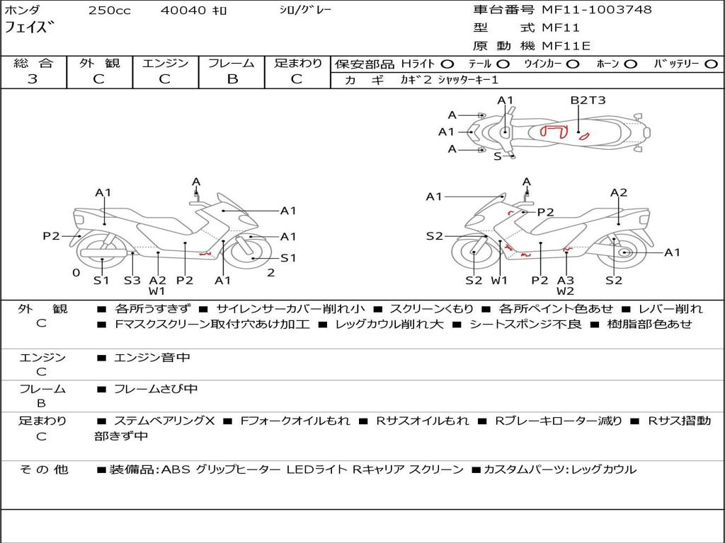| Номер рамы / VIN | MF11-1003748 |