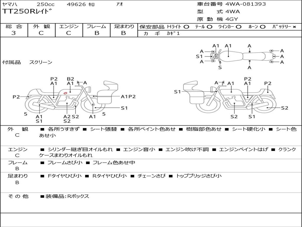 | Номер рамы / VIN | 4WA-081393 |