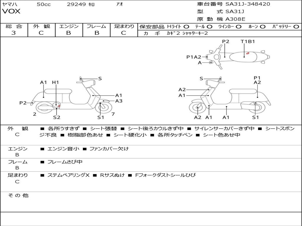 | Номер рамы / VIN | SA31J-348420 |
