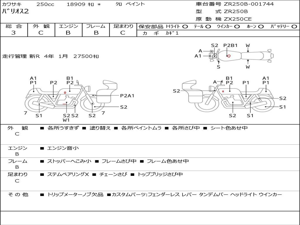| Номер рамы / VIN | ZR250B-001744 |