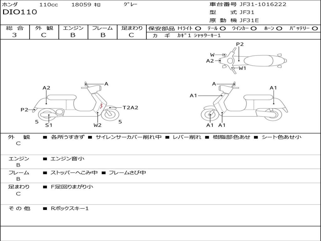 | Номер рамы / VIN | JF31-1016222 |