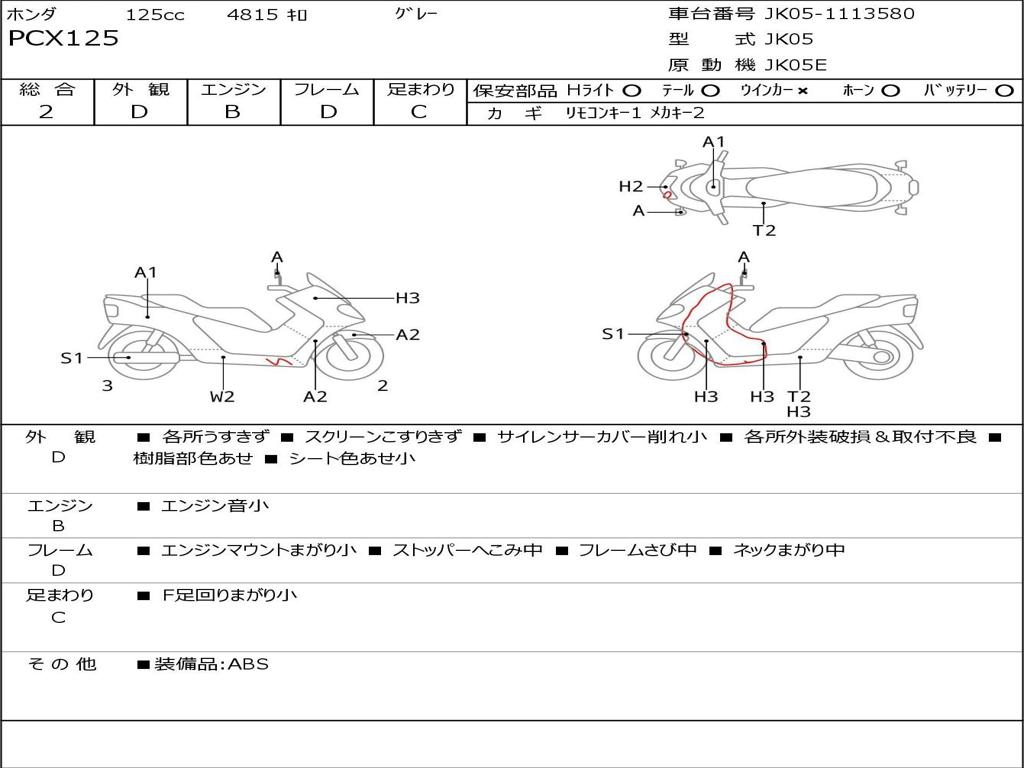 | Номер рамы / VIN | JK05-1113580 |