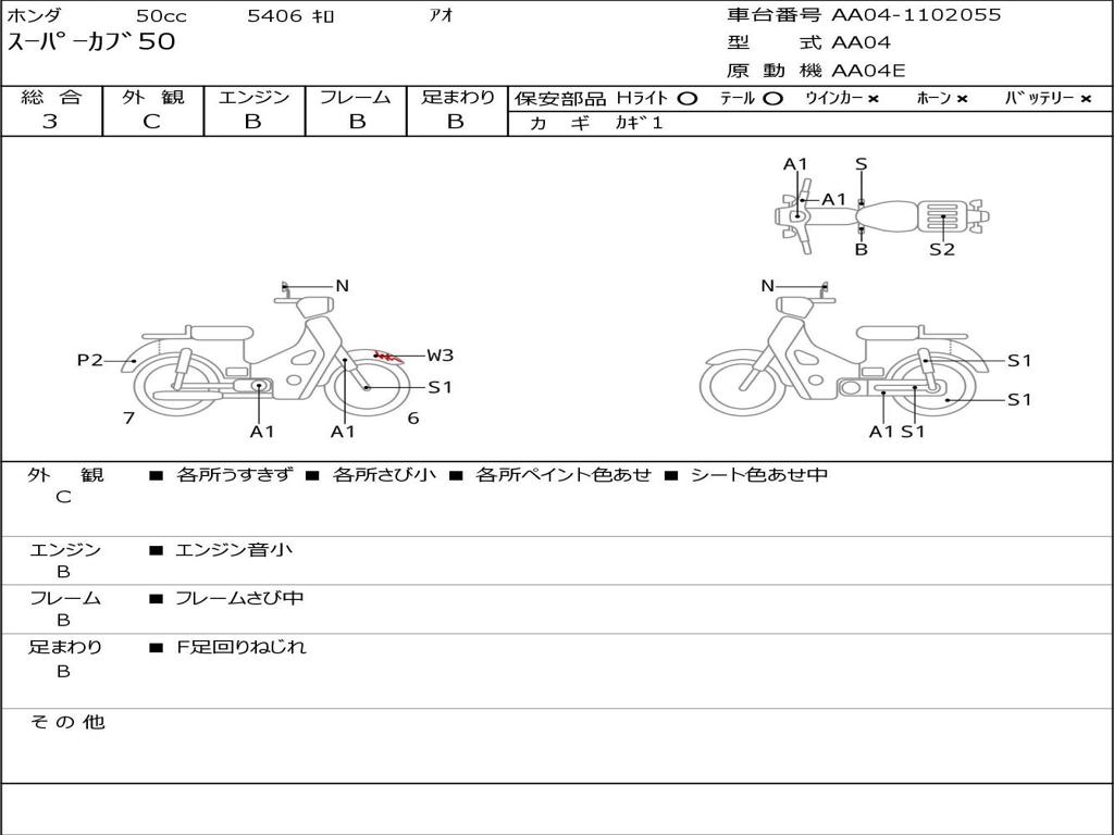 | Номер рамы / VIN | AA04-1102055 |