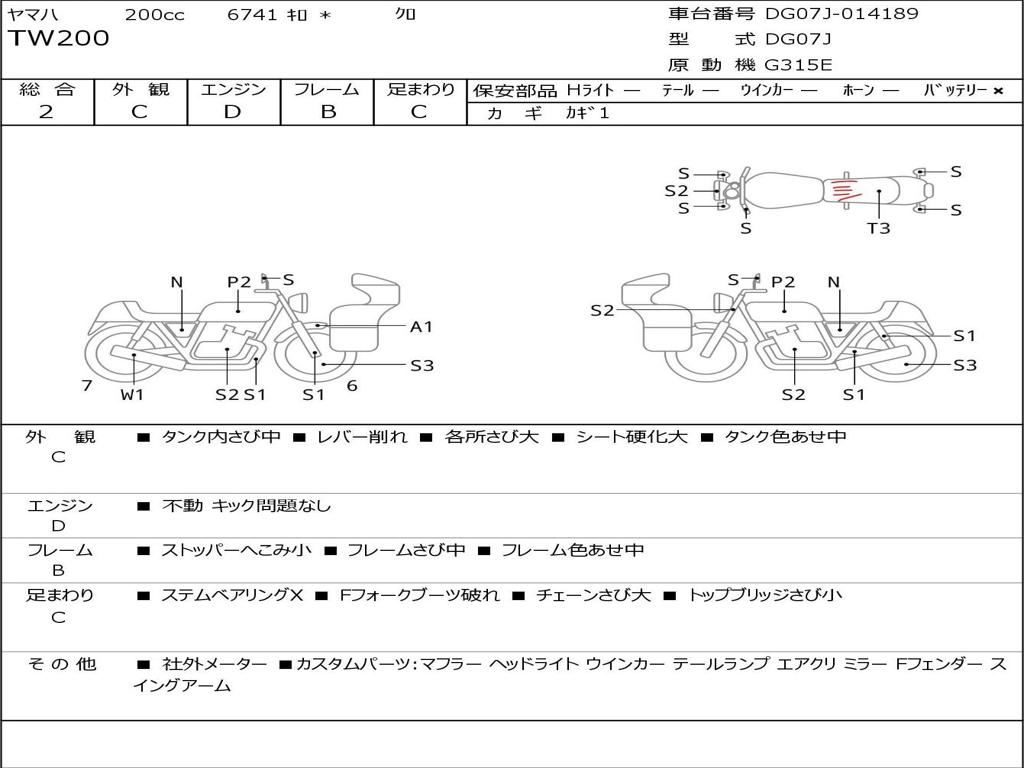 | Номер рамы / VIN | DG07J-014189 |