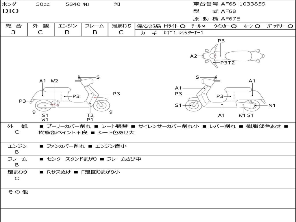 | Номер рамы / VIN | AF68-1033859 |