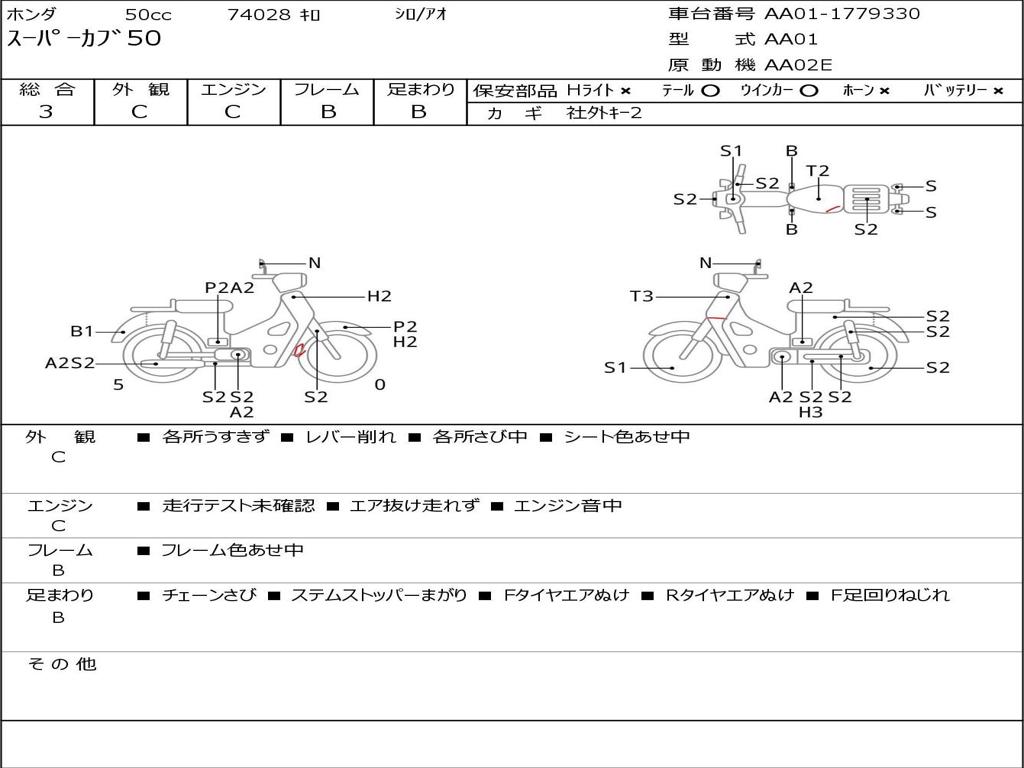 | Номер рамы / VIN | AA01-1779330 |