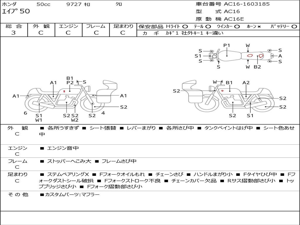 | Номер рамы / VIN | AC16-1603185 |