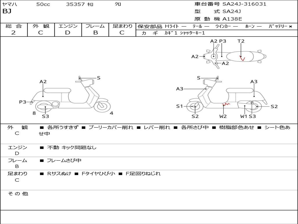 | Номер рамы / VIN | SA24J-316031 |