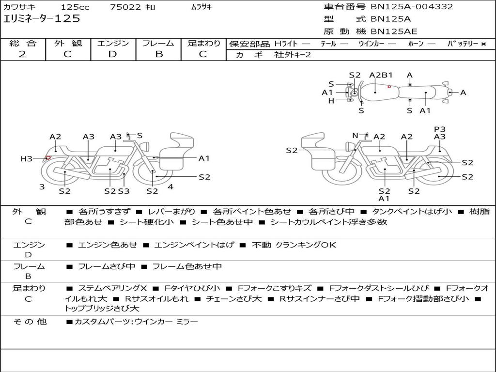 | Номер рамы / VIN | BN125A-004332 |