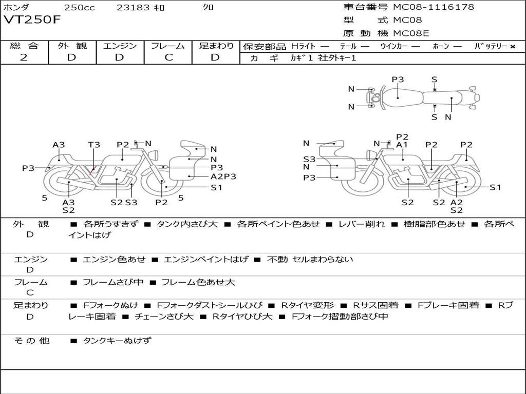 | Номер рамы / VIN | MC08-1116178 |