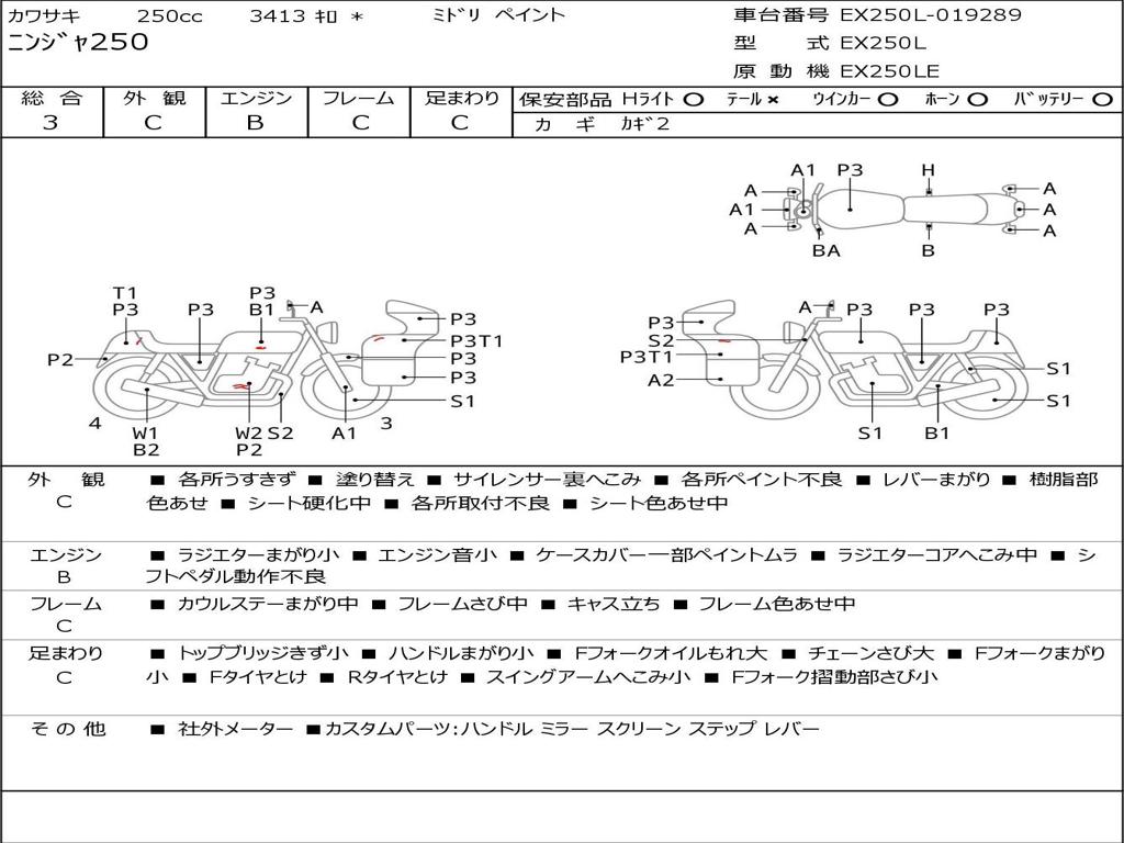| Номер рамы / VIN | EX250L-019289 |