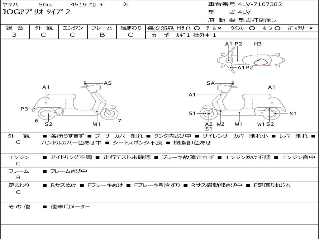 | Номер рамы / VIN | 4LV-7107382 |