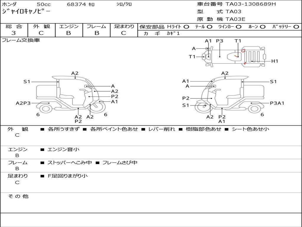 | Номер рамы / VIN | TA03-1308689H |