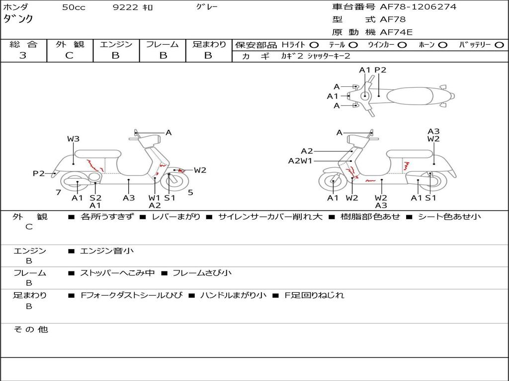 | Номер рамы / VIN | AF78-1206274 |