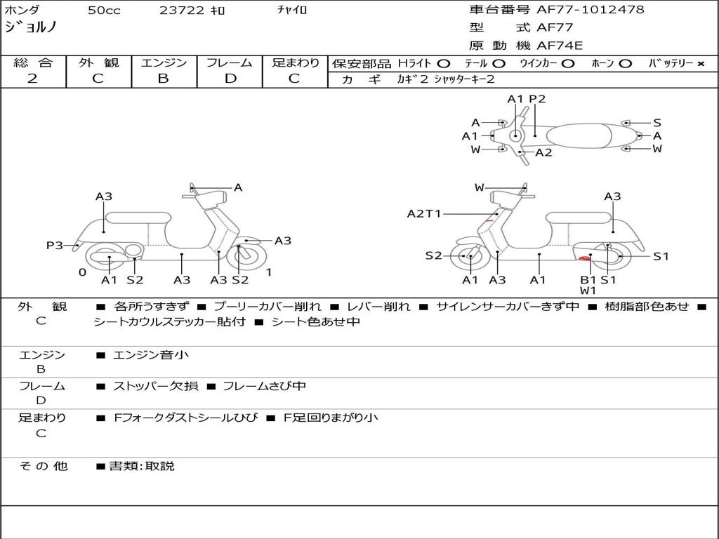 | Номер рамы / VIN | AF77-1012478 |