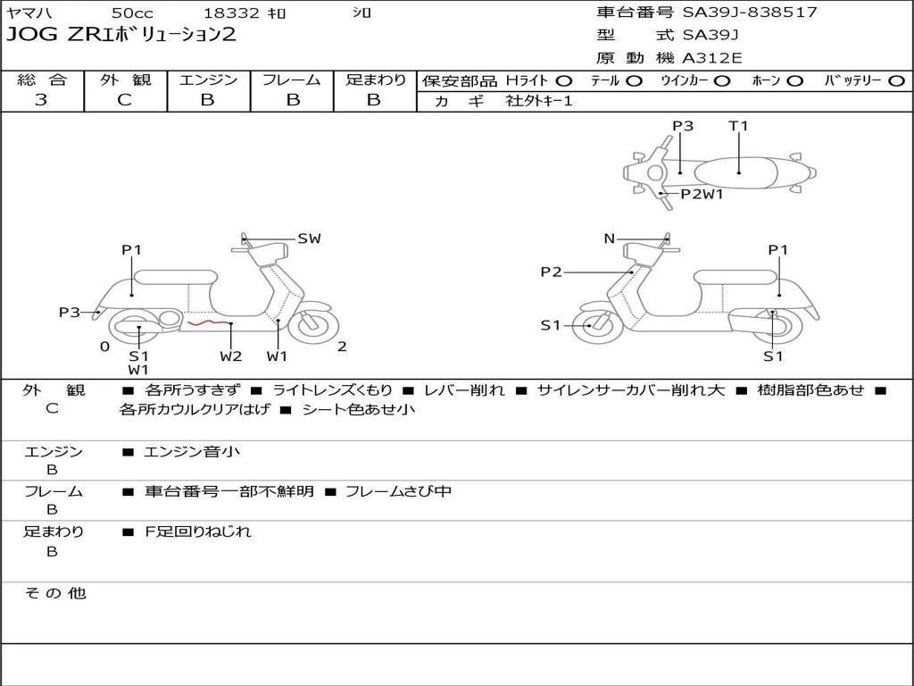 | Номер рамы / VIN | SA39J-838517 |