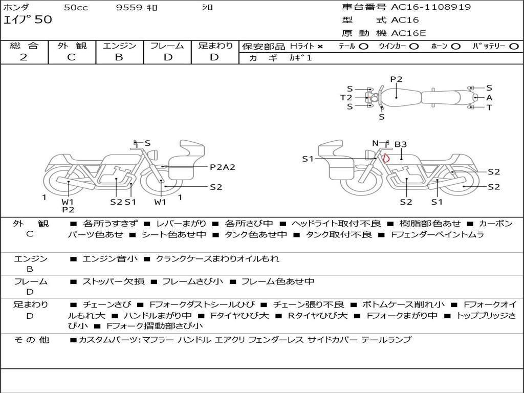 | Номер рамы / VIN | AC16-1108919 |