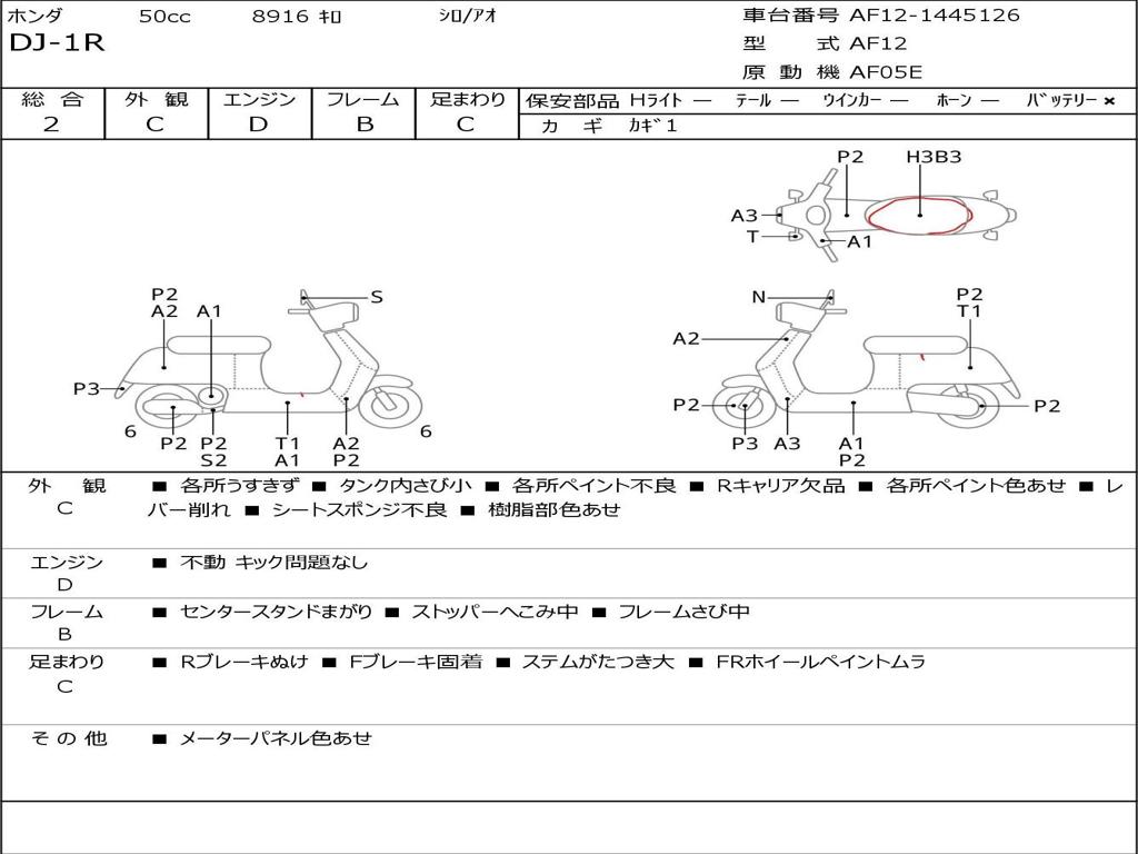 | Номер рамы / VIN | AF12-1445126 |