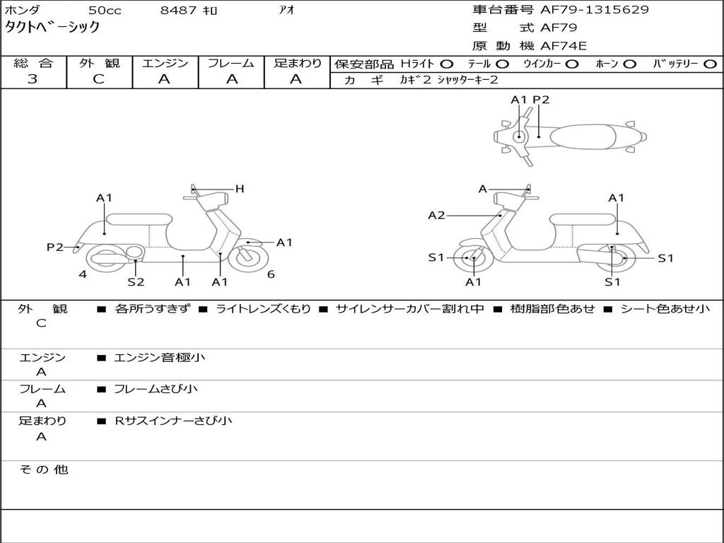 | Номер рамы / VIN | AF79-1315629 |