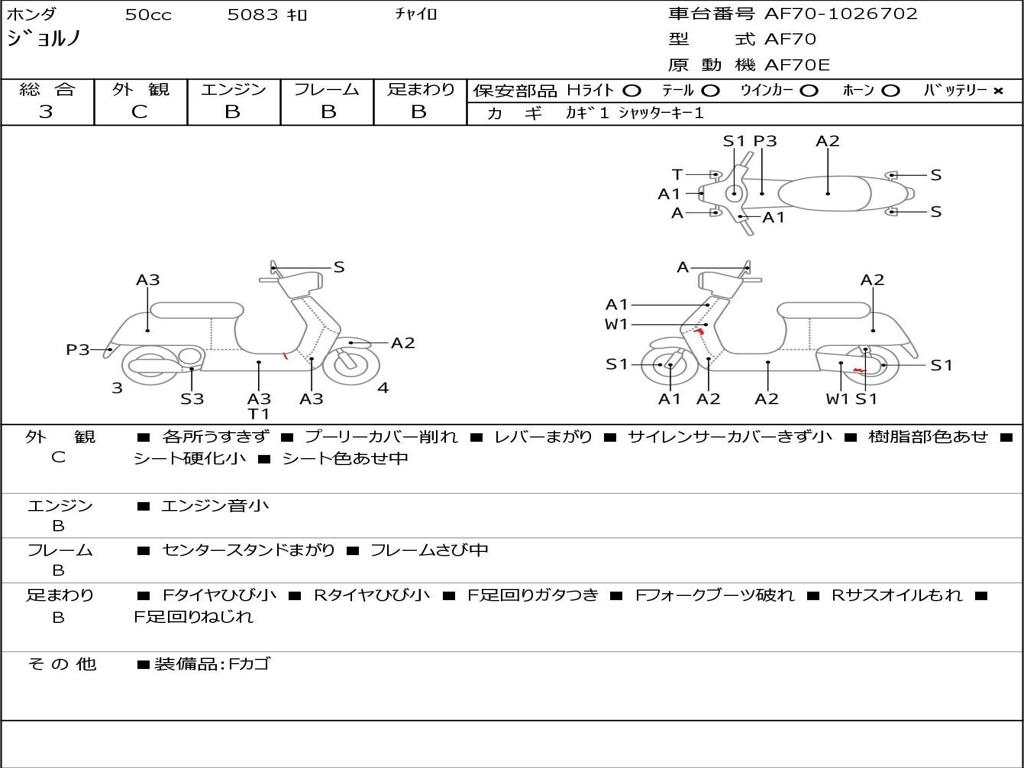 | Номер рамы / VIN | AF70-1026702 |
