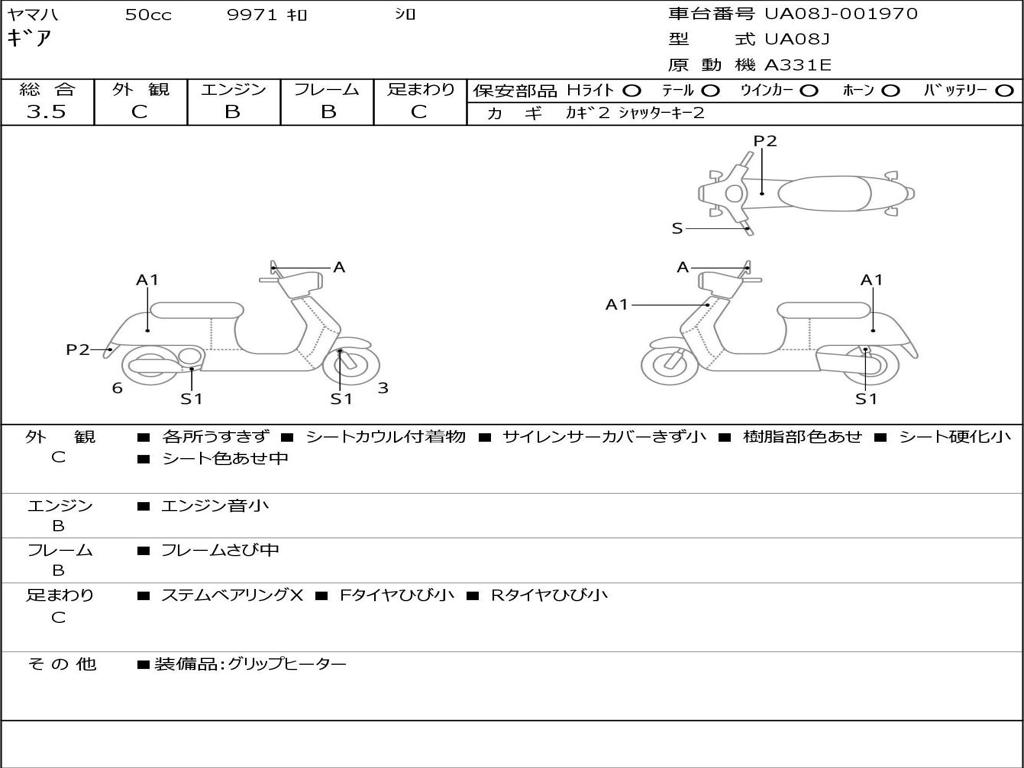 Номер рамы / VIN | UA08J-001970 |