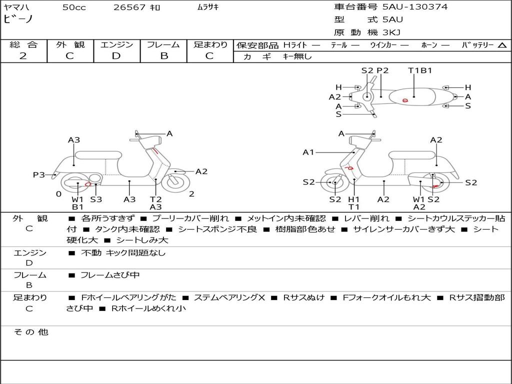 | Номер рамы / VIN | 5AU-130374 |