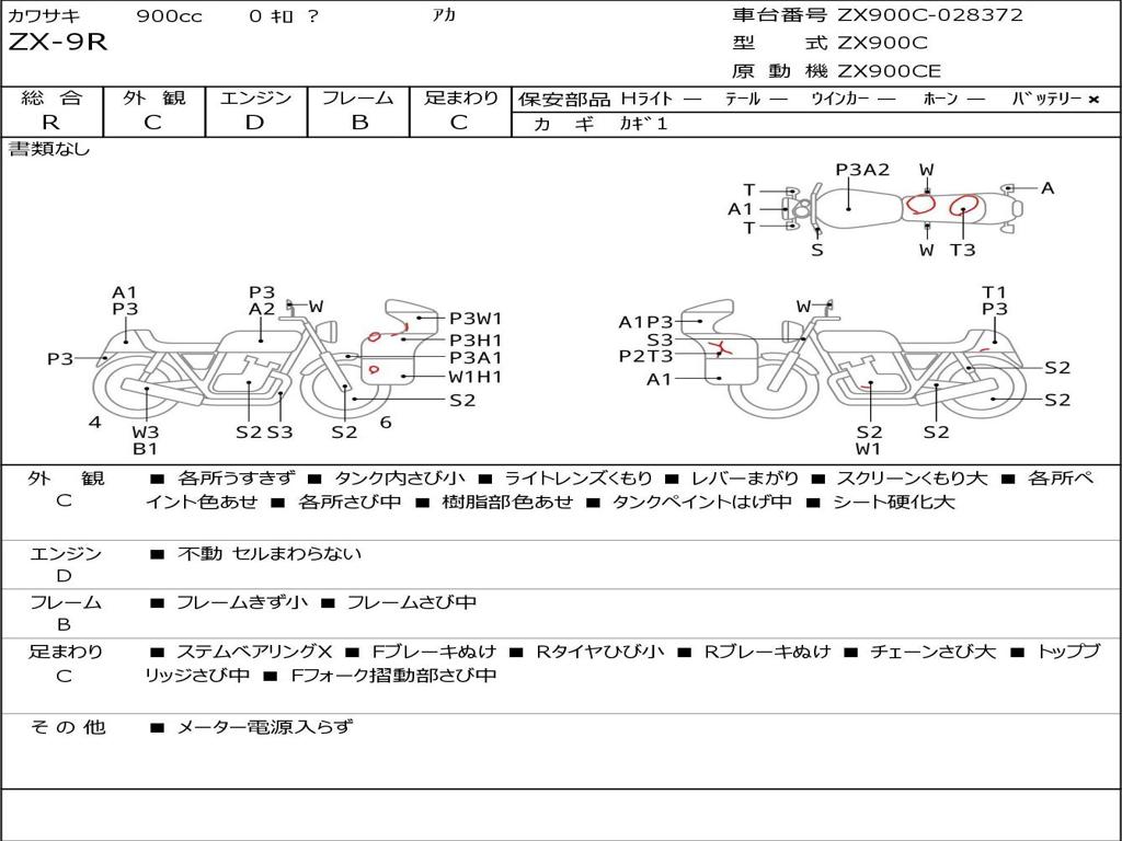 | Номер рамы / VIN | ZX900C-028372 |