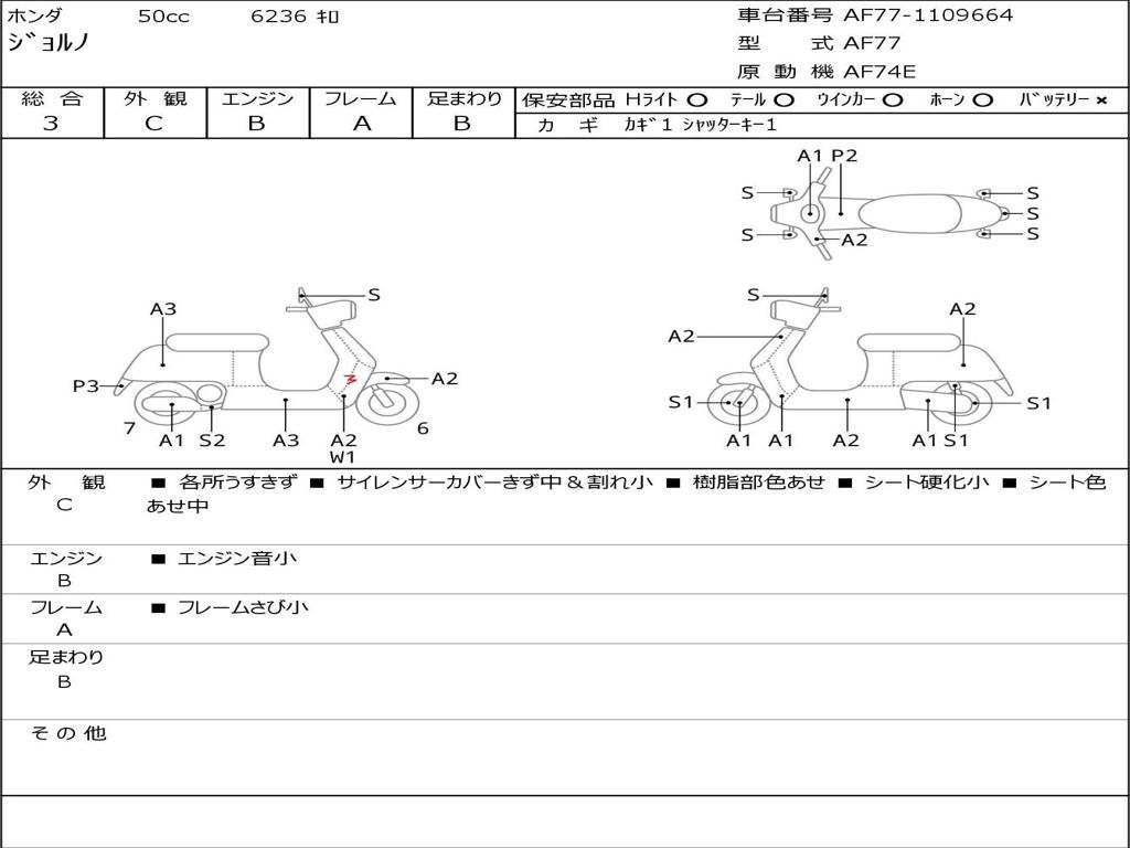 | Номер рамы / VIN | AF77-1109664 |