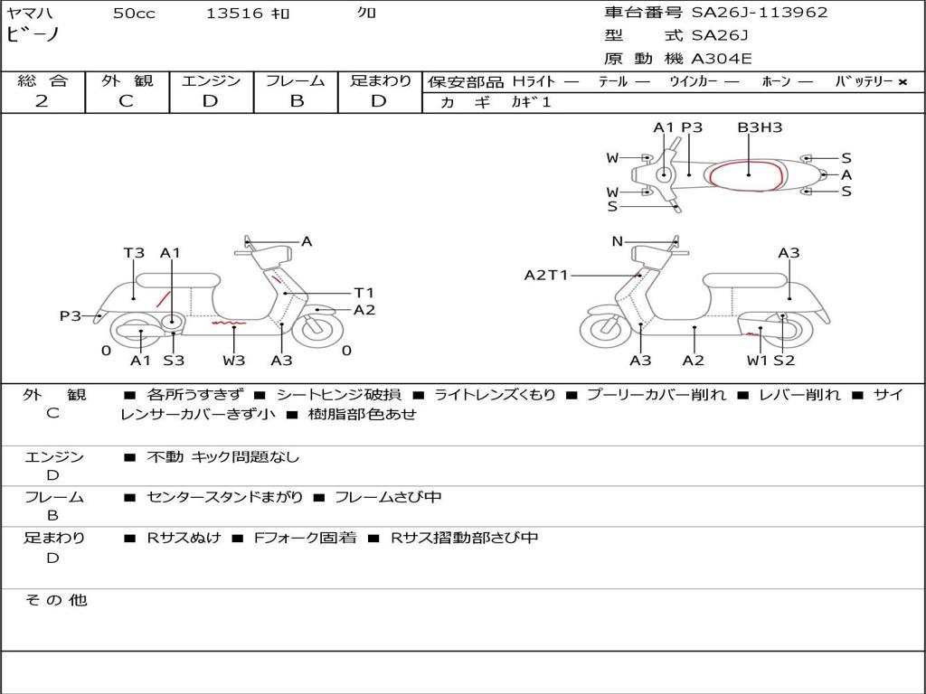| Номер рамы / VIN | SA26J-113962 |