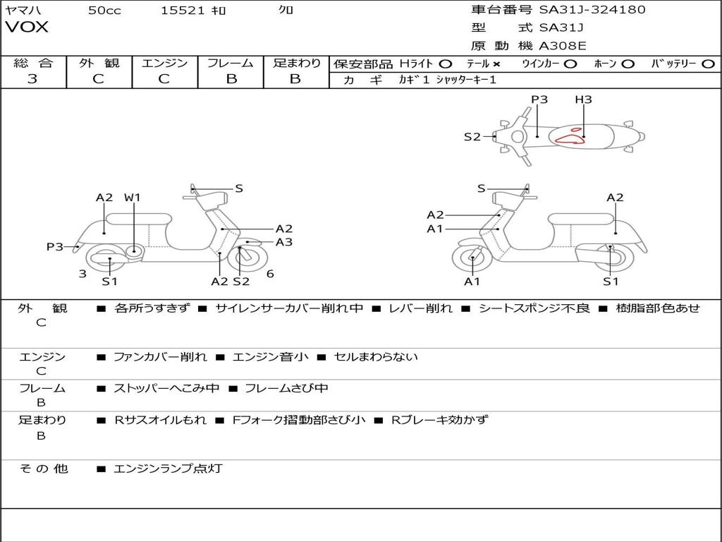 | Номер рамы / VIN | SA31J-324180 |