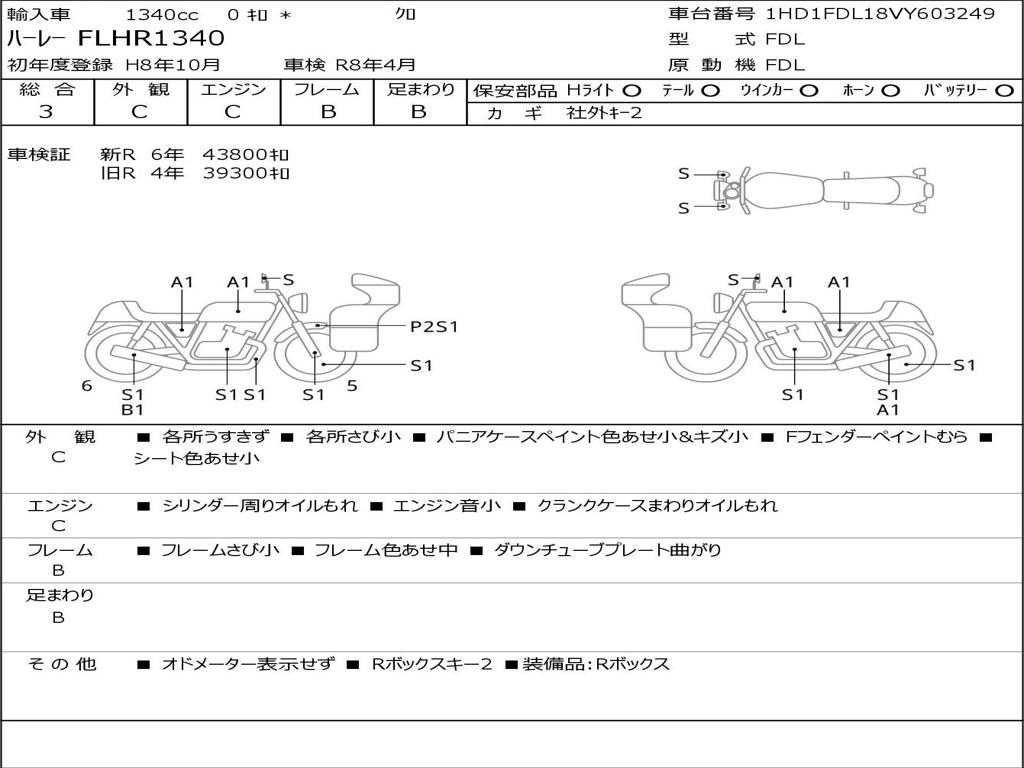 | Номер рамы / VIN | 1HD1FDL18VY603249 |