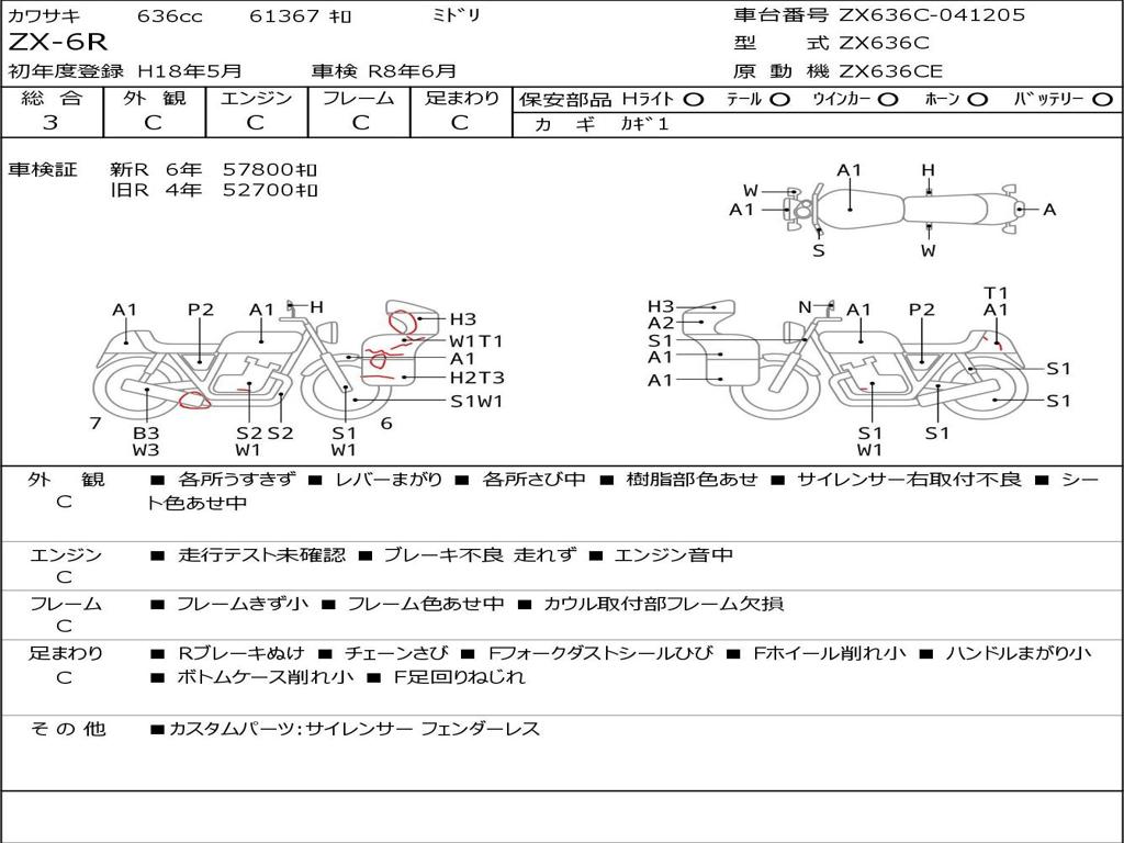 | Номер рамы / VIN | ZX636C-041205 |