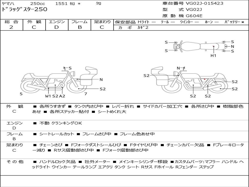 | Номер рамы / VIN | VG02J-015423 |