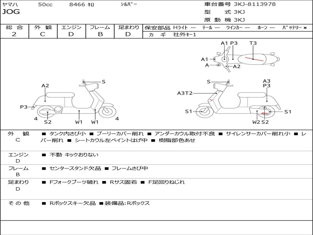 | Номер рамы / VIN | 3KJ-8113978 |