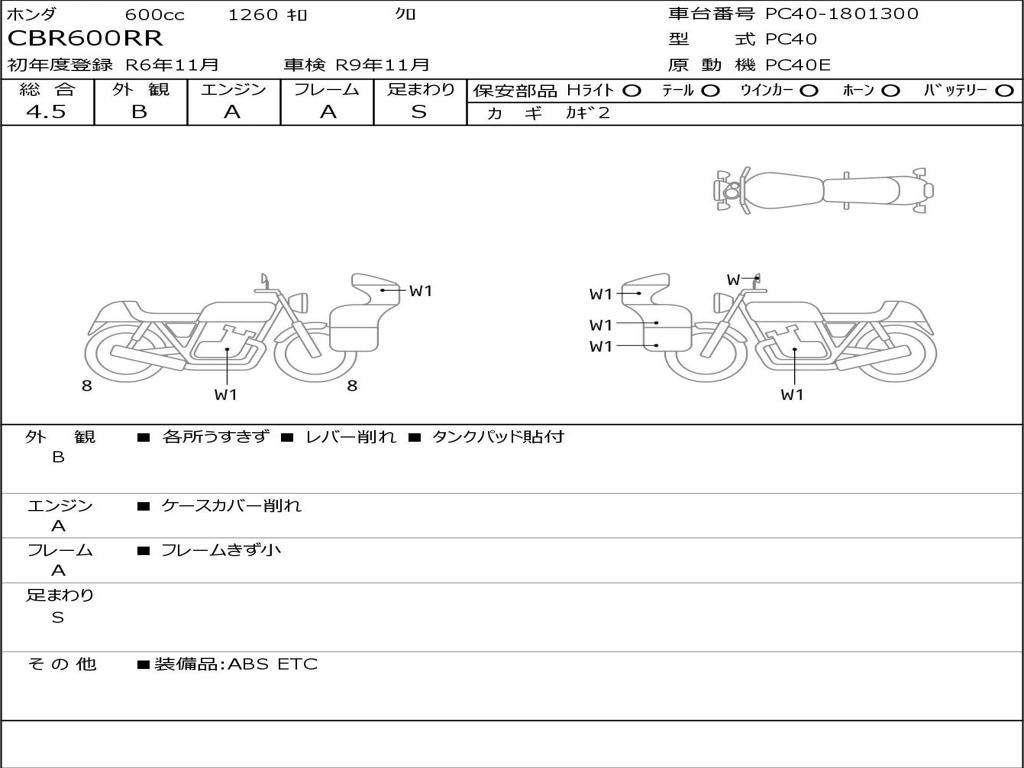 | Номер рамы / VIN | PC40-1801300 |