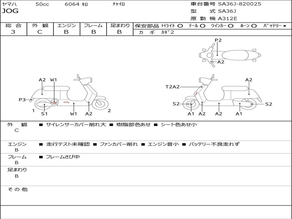 | Номер рамы / VIN | SA36J-820025 |