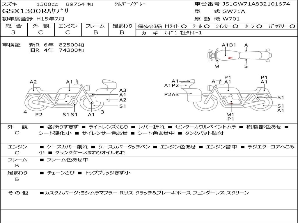 | Номер рамы / VIN | JS1GW71A832101674 |