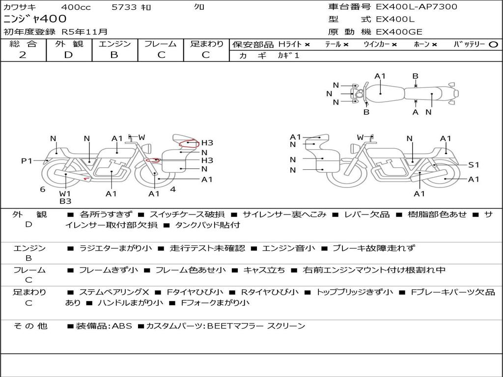 | Номер рамы / VIN | EX400L-AP7300 |
