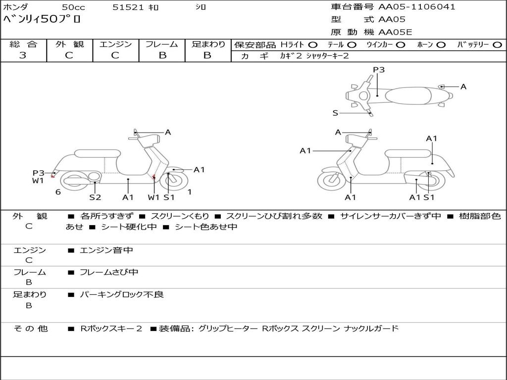 | Номер рамы / VIN | AA05-1106041 |