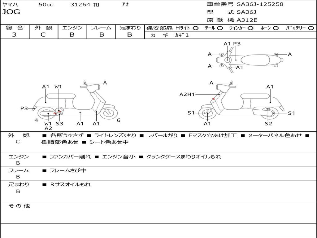 | Номер рамы / VIN | SA36J-125258 |