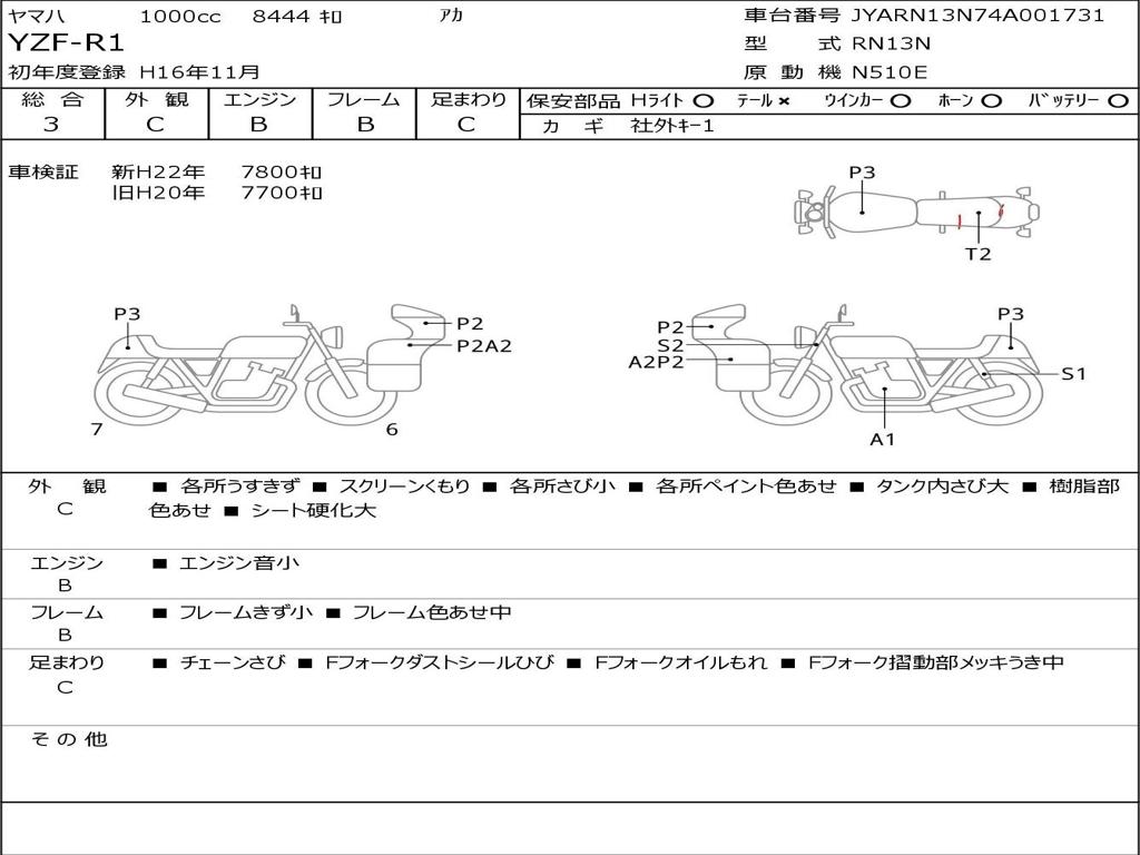 | Номер рамы / VIN | JYARN13N74A001731 |