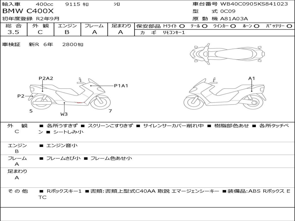 | Номер рамы / VIN | WB40C0905KS841023 |