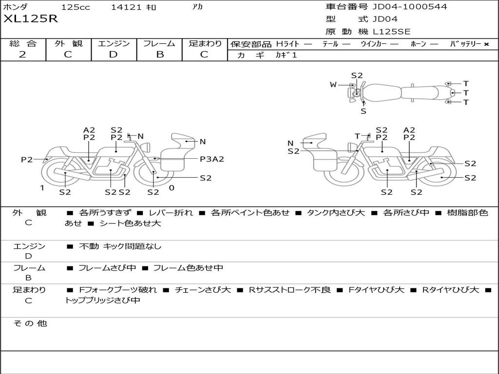 | Номер рамы / VIN | JD04-1000544 |