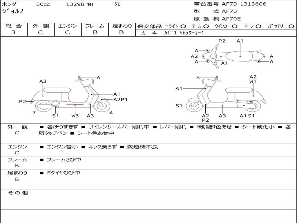 | Номер рамы / VIN | AF70-1313606 |