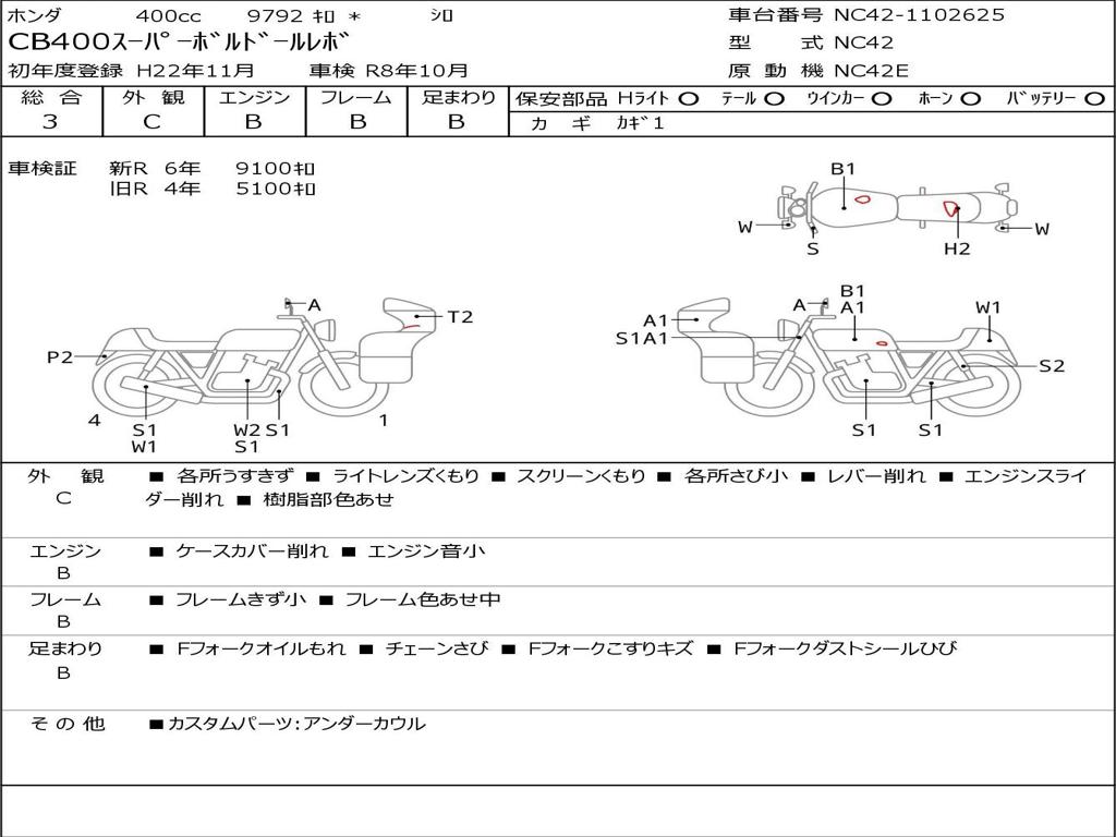 | Номер рамы / VIN | NC42-1102625 |