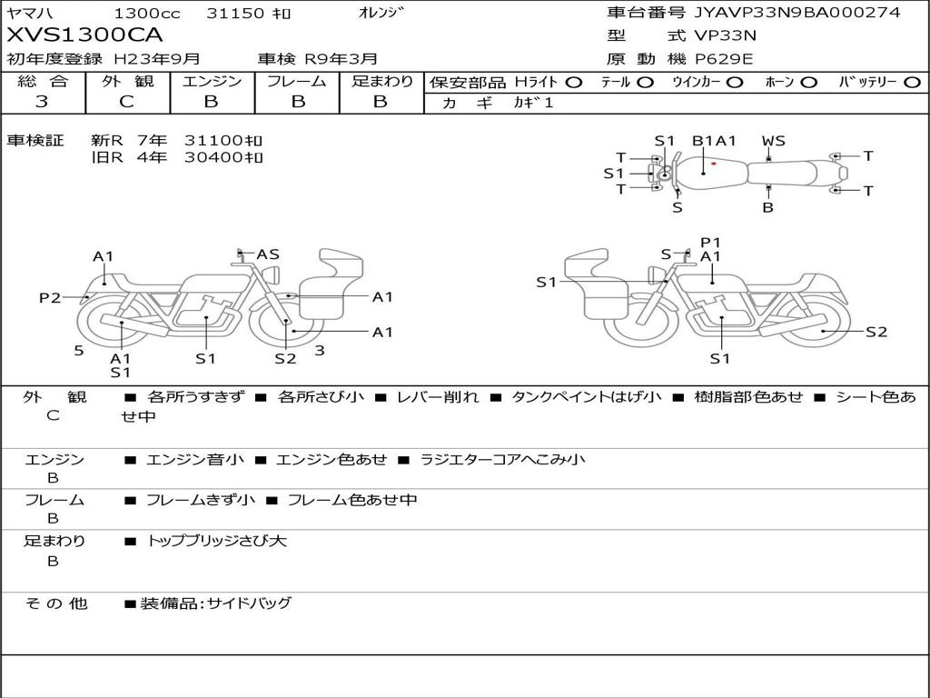 | Номер рамы / VIN | JYAVP33N9BA000274 |