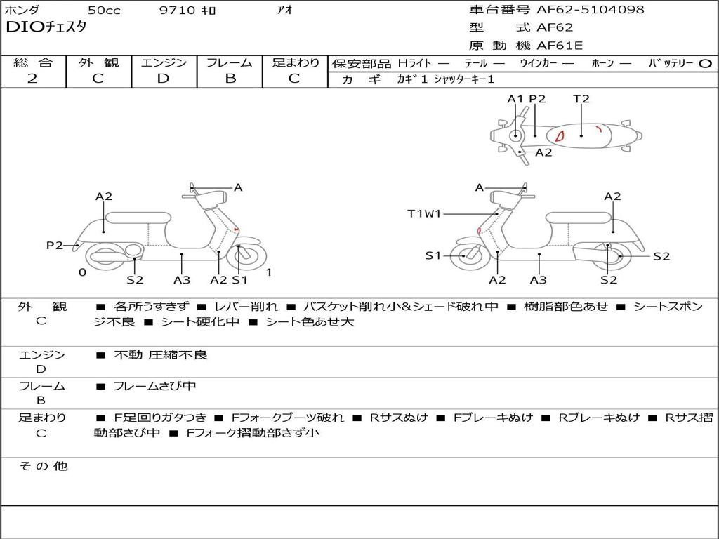 | Номер рамы / VIN | AF62-5104098 |